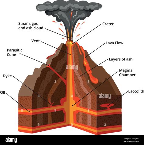 Through which the magma and other Volcanic ash is created during explosive eruptions by the shattering of solid rocks and the violent separation of magma into tiny pieces. Volcano cross section with hot lava and volcanic ash cloud vector. This fantastic layers of a volcano labelled poster is the perfect way to introduce children to the different layers of a.
